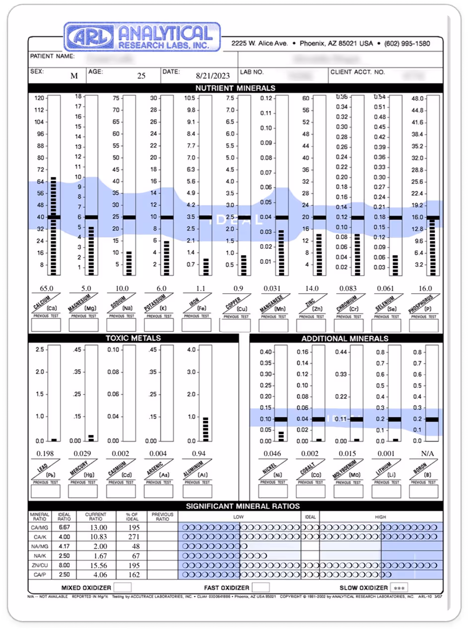 ARL ist bis heute ausschließlich auf Haarmineralanalysen spezialisiert – keine Bluttests, keine Urinproben, keine Nebenschauplätze. Diese konsequente Fokussierung sorgt für unerreichte Genauigkeit. Es ist das einzige Labor auf der Welt, welches die Haare vor der Analyse nicht wäscht – ein entscheidender Faktor, da dabei Mineralien verloren gehen und die Ergebnisse verfälscht werden.